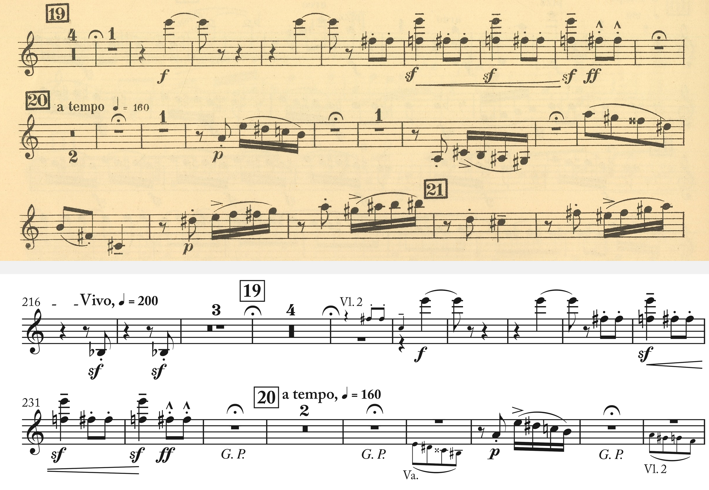 Violin 1, II. mov., above: first edition; below: Henle Urtext edition