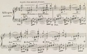 For the new revision at the beginning of 1851, Liszt took an exemplar of the 1839 Haslinger edition and entered the changes there. Where these were too far-reaching – as in the case of the theme from measure 7 onwards – he wrote the new version down on a leaf, so that the engraver’s model is comprised of folios from the old edition and new autograph sections. He expanded the introduction with a “cadenza ad libitum” of fast unison runs, thus further heightening the expectation of the “actual” beginning. The presentation of the theme itself appears sharpened in several respects: the thirds, now notated on their own stave, are shortened to 16th notes, and the respective upbeat notes to beats 1 and 3 in the theme are shortened to 32nd notes. The technical demands of the leaps in both hands appear to have once again been increased, still posing a great challenge today.