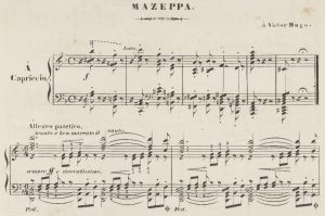 Apart from changes in the transition between variations 3 to 4 and at the end, the third version’s most striking innovations are, on the one hand, the five-measure introduction with diminished-seventh chords and, on the other, the title Mazeppa with the dedication to Victor Hugo. Liszt is thus alluding to Hugo’s eponymous poem of 1828, devoted to the tragic fate of the Cossack leader Ivan Masepa (1639-1709), who was glorified in literature around 1800. The piece’s trajectory can thus be described as from a characteristically figured etude via an expanded variation form to an extended pianistic poem (the reworking into a symphonic poem undertaken immediately after the publication of the final version seems only logical). The theme’s presentation is, however, unchanged from version II.
