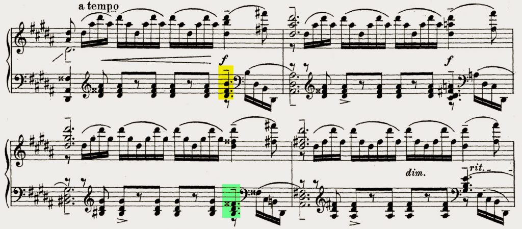 I owe the second reference to the pianist Mark Sullivan from California. Some time ago he wrote me about a possible missing accidental in the G-sharp-minor Prélude, op. 32, no. 12. When comparing sources during my editing work in 2013, I had already noticed that in m. 18 on the last, left-hand beat, a b must surely be meant, even if the natural sign is missing in both the autograph and first edition (see the green highlighting in the music example):