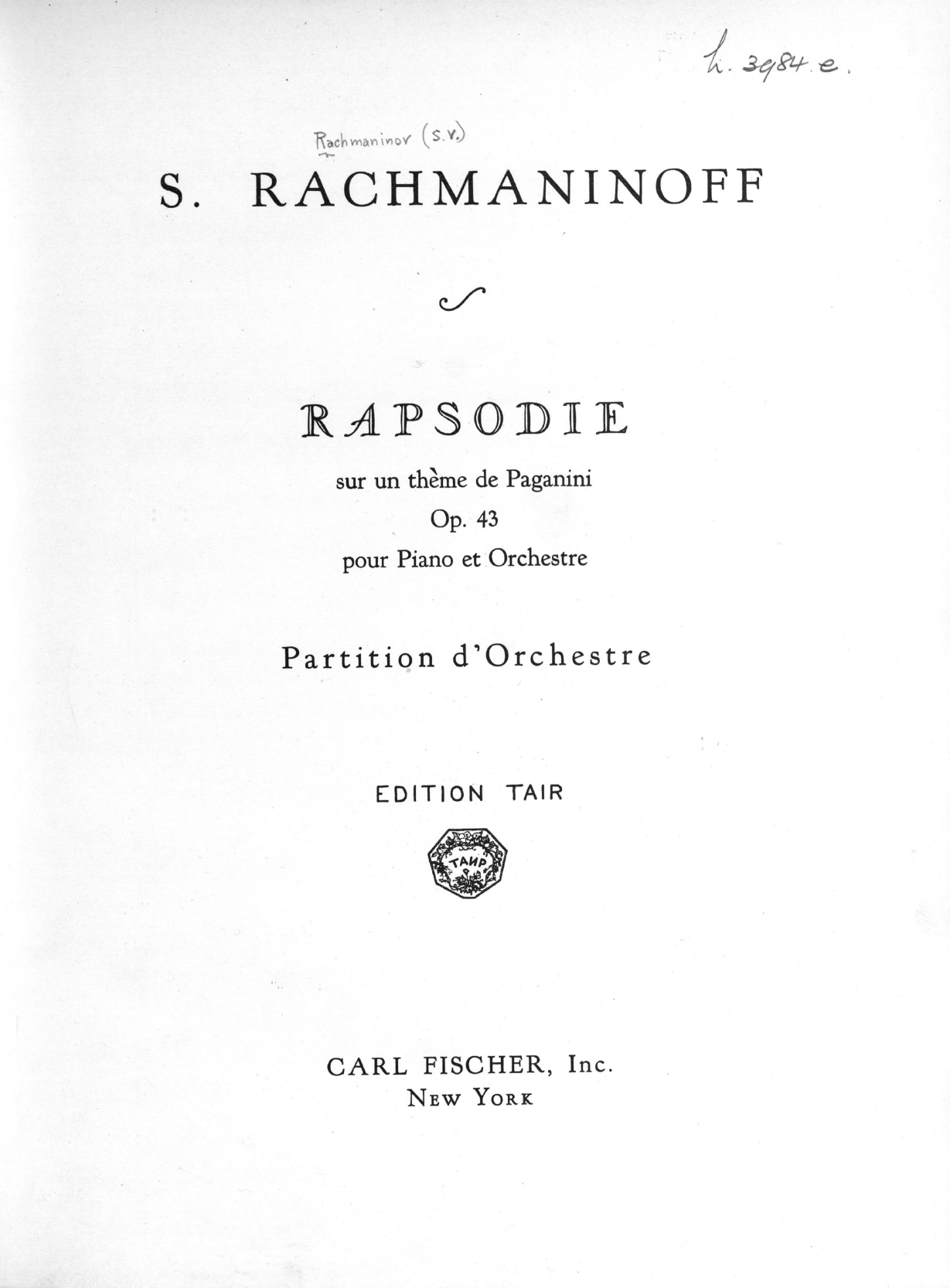 Henle in collaboration with Breitkopf & Härtel is publishing the Paganini Rhapsody in both a full orchestral score including parts and in a piano reduction. All sources relevant to the edition are to be found in the Rachmaninoff estate preserved in the Library of Congress. There I was able to consult the autograph of the full orchestral score, study the first editions of the score and piano reduction and examine two exemplars of the first full-score edition with conductor’s markings.